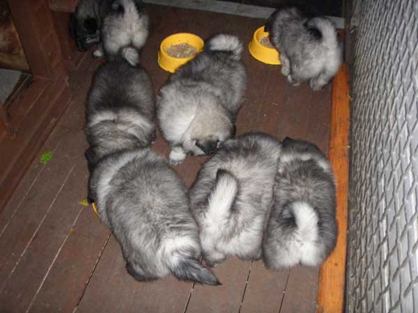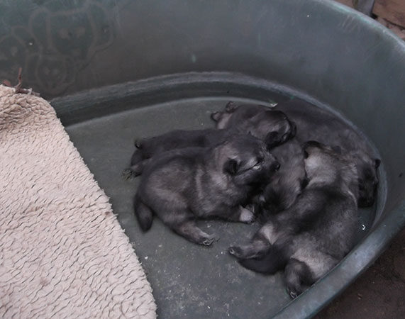 Neue Wolfsspitz-Welpen! Mitte Dezember 2006 war es soweit: der neue Wolfsspitzwurf ist da! Es sind 4 Rüden und 2 Hündinnen. Links ein Bild im Alter von 3 Tagen. Die Eltern: Clio v. Schülerhof und August vom Zschopautal. [ vergrößern] |